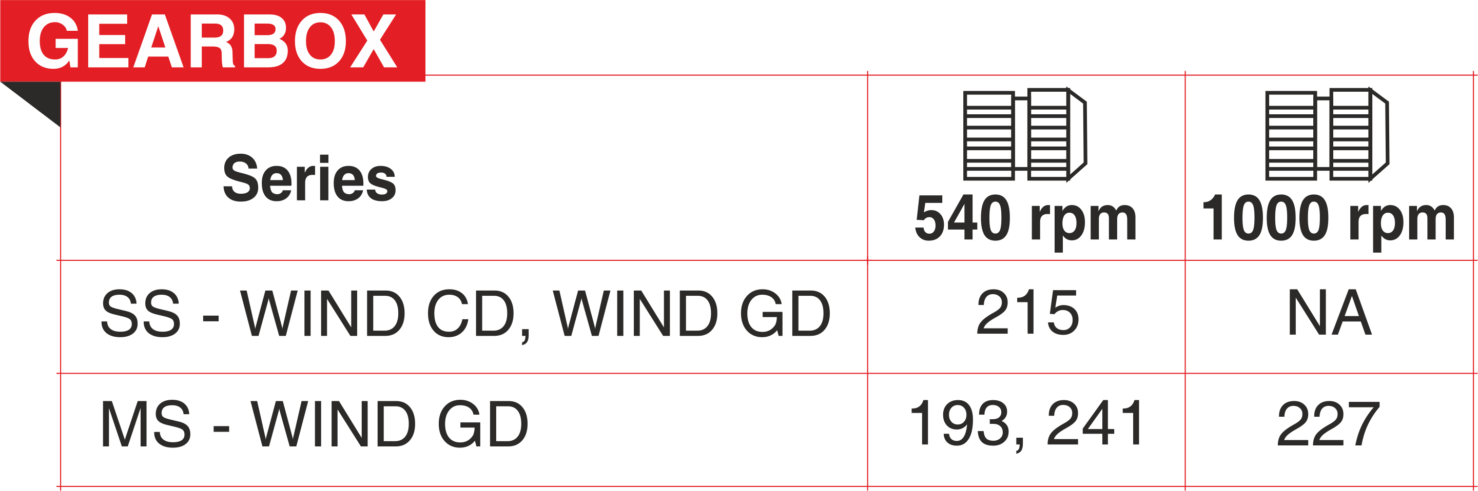 Model Tractor Power (hp) Working Width (cm) Overall Width (cm) Working Depth (cm) No. of Blades Weight (kg)